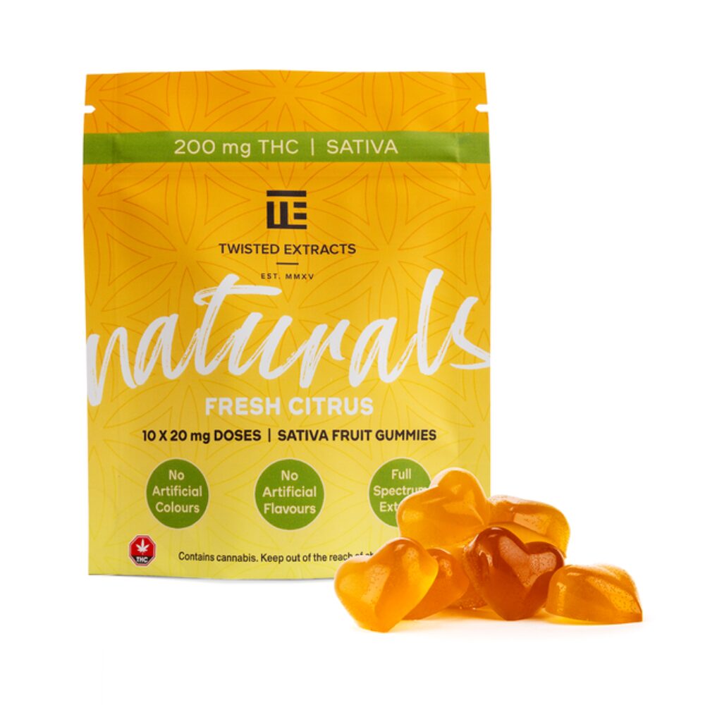 Twisted Naturals Citrus Twist Gummies offer a clean, flavourful way to brighten your day, made with natural citrus notes and crafted for smooth, uplifting sativa effects. Each gummy is fully infused for accurate dosing and reliable potency, giving you an easy, tasty way to stay energized and focused.
